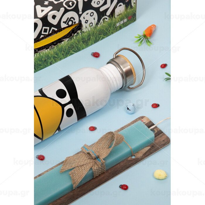 Angry birds eyes, Easter Set, metallic silver aluminum water bottle (500ml) & scented flat Easter candle (30cm) (TURQUOISE)