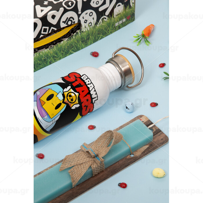 Brawl Stars Sprout, Easter Set, metallic silver aluminum water bottle (500ml) & scented flat Easter candle (30cm) (TURQUOISE)