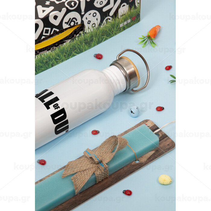 Call of Duty, Easter Set, metallic silver aluminum water bottle (500ml) & scented flat Easter candle (30cm) (TURQUOISE)