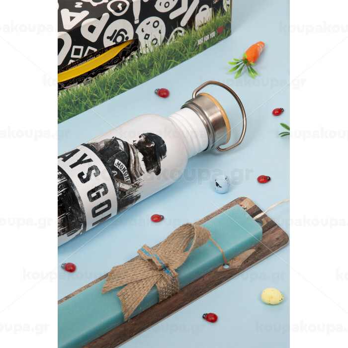 Day's Gone, Easter Set, metallic silver aluminum water bottle (500ml) & scented flat Easter candle (30cm) (TURQUOISE)