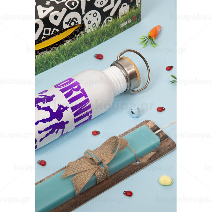 Fortnite #squadgoals, Easter Set, metallic silver aluminum water bottle (500ml) & scented flat Easter candle (30cm) (TURQUOISE)