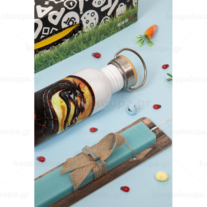 Mortal Kombat, Easter Set, metallic silver aluminum water bottle (500ml) & scented flat Easter candle (30cm) (TURQUOISE)