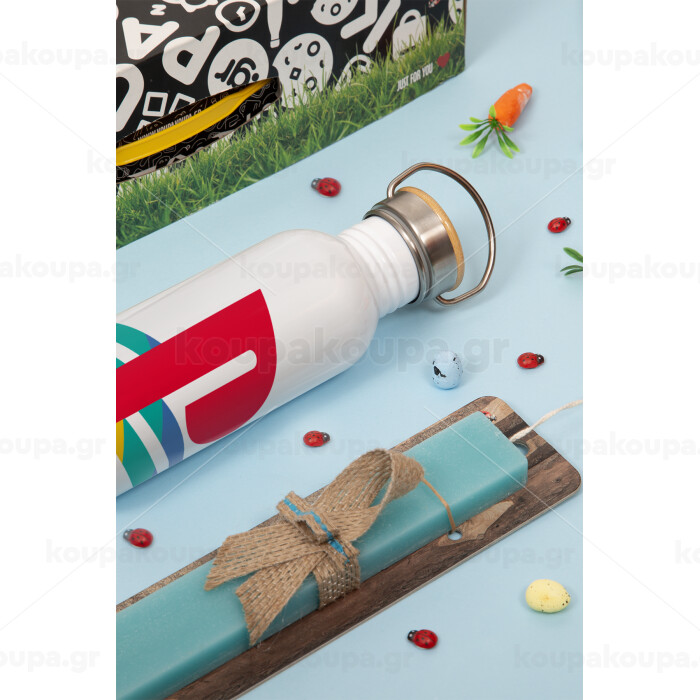 Playstation, Easter Set, metallic silver aluminum water bottle (500ml) & scented flat Easter candle (30cm) (TURQUOISE)