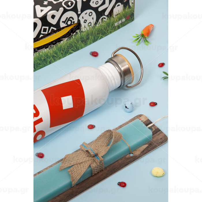 Roblox red, Easter Set, metallic silver aluminum water bottle (500ml) & scented flat Easter candle (30cm) (TURQUOISE)