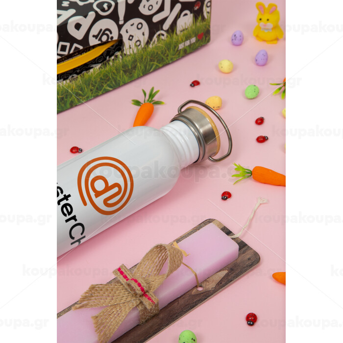 Disaster Chef, Easter Set, SS Metallic water bottle (620ml, stainless steel) & scented flat Easter candle (30cm) (PINK)