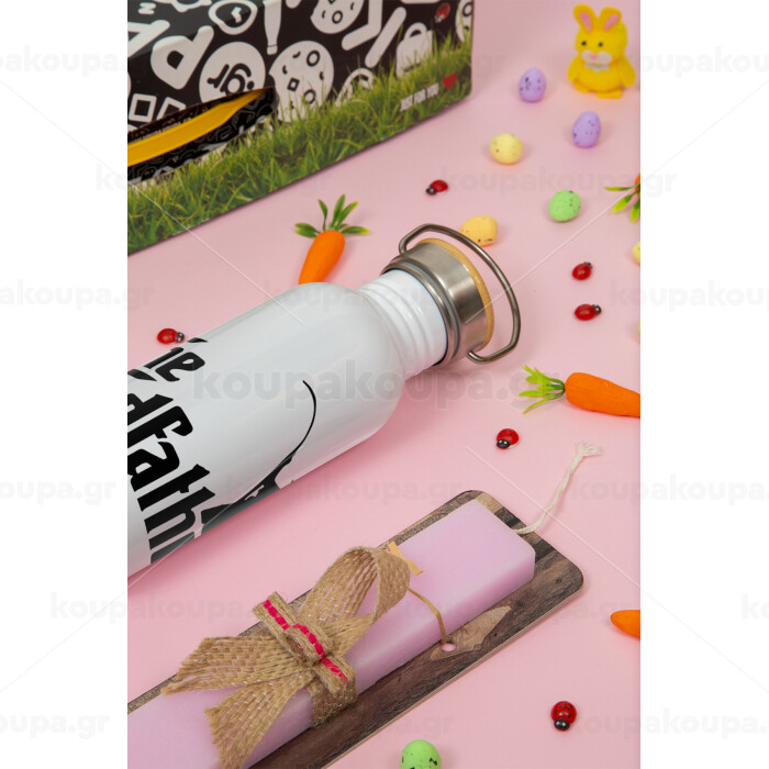 The rodfather, Easter Set, SS Metallic water bottle (620ml, stainless steel) & scented flat Easter candle (30cm) (PINK)
