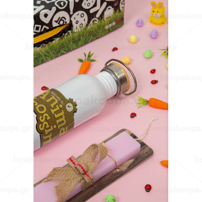 Animal Crossing, Easter Set, SS Metallic water bottle (620ml, stainless steel) & scented flat Easter candle (30cm) (PINK)