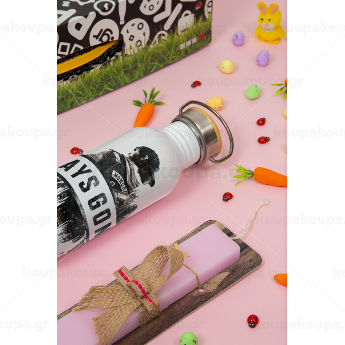Day's Gone, Easter Set, SS Metallic water bottle (620ml, stainless steel) & scented flat Easter candle (30cm) (PINK)