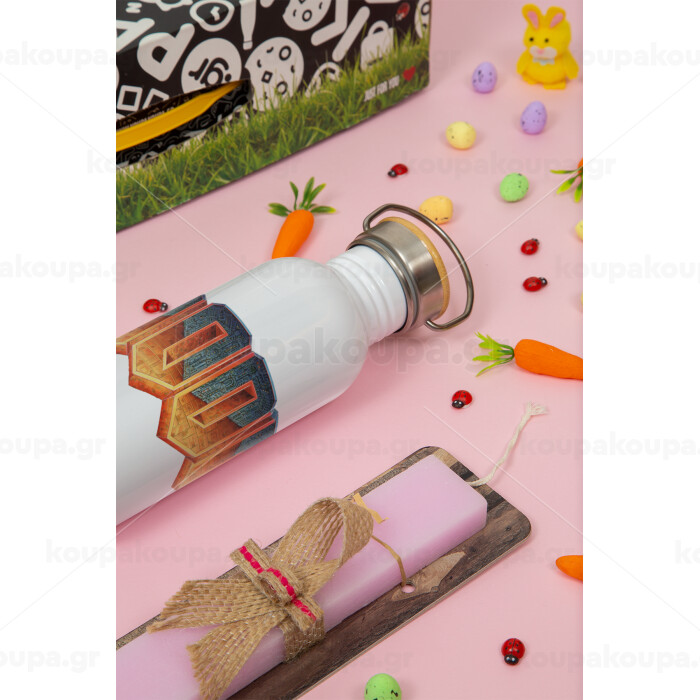 DOOM, Easter Set, SS Metallic water bottle (620ml, stainless steel) & scented flat Easter candle (30cm) (PINK)