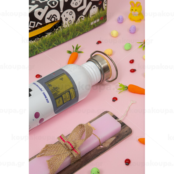 Gameboy, Easter Set, SS Metallic water bottle (620ml, stainless steel) & scented flat Easter candle (30cm) (PINK)