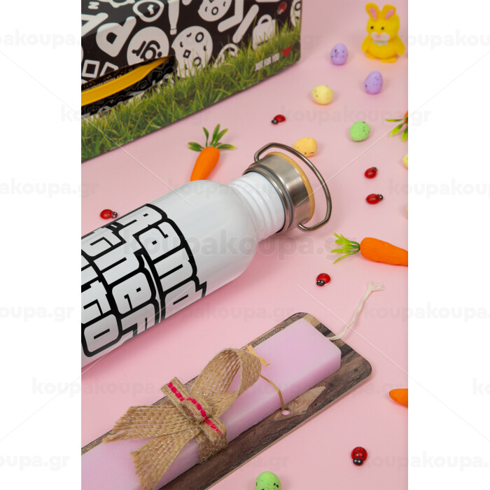GTA (grand theft auto), Easter Set, SS Metallic water bottle (620ml, stainless steel) & scented flat Easter candle (30cm) (PINK)