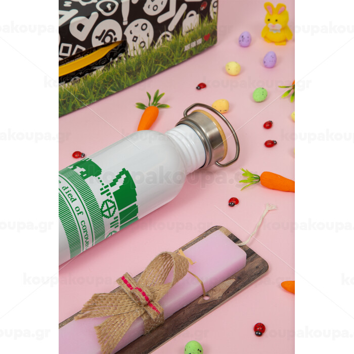 Oregon Trail, cov... edition, Easter Set, SS Metallic water bottle (620ml, stainless steel) & scented flat Easter candle (30cm) (PINK)