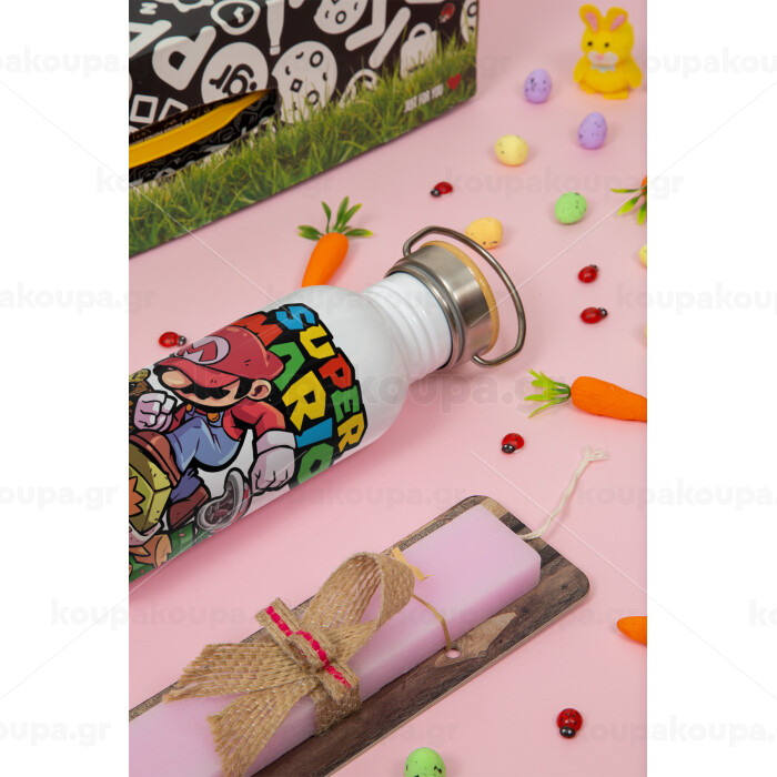 Super mario Jump, Easter Set, SS Metallic water bottle (620ml, stainless steel) & scented flat Easter candle (30cm) (PINK)