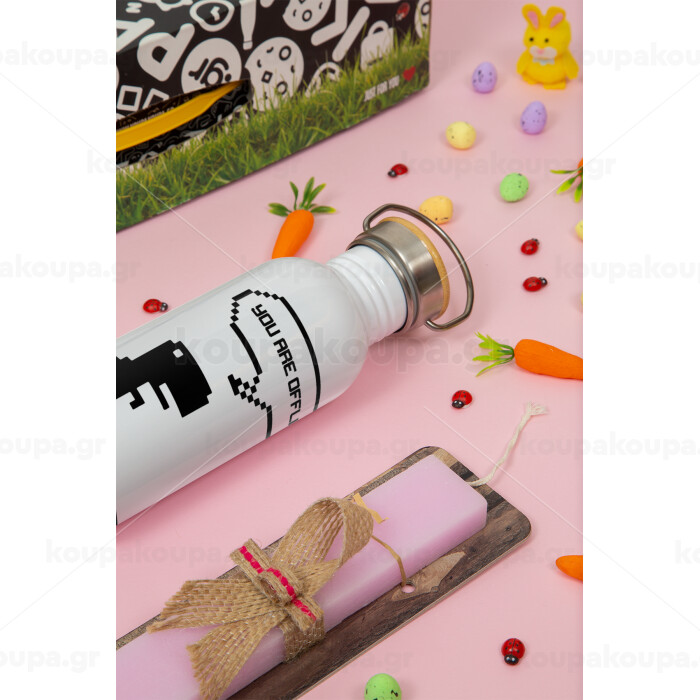 You are offline dinosaur, Easter Set, SS Metallic water bottle (620ml, stainless steel) & scented flat Easter candle (30cm) (PINK)