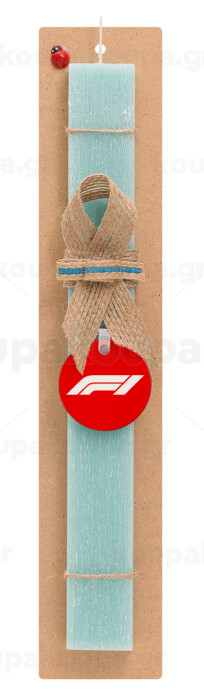 Formula 1, Easter Set, wooden keychain & aromatic flat Easter candle (30cm) (TURQUOISE)