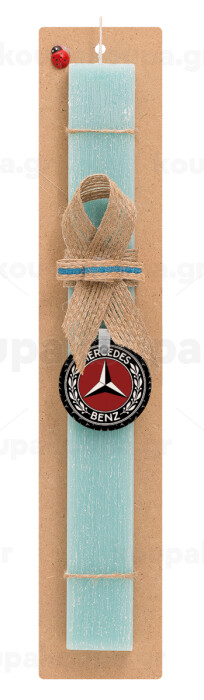 Mercedes vintage, Easter Set, wooden keychain & aromatic flat Easter candle (30cm) (TURQUOISE)