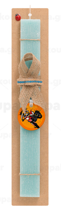 Motocross, Easter Set, wooden keychain & aromatic flat Easter candle (30cm) (TURQUOISE)