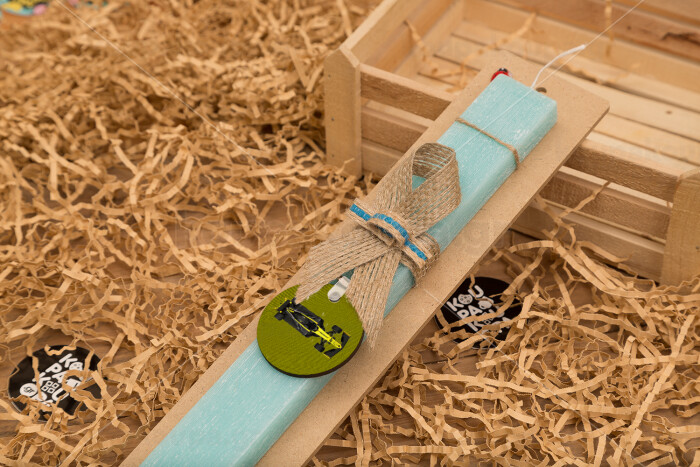 Renault Formula 1, Easter Set, wooden keychain & aromatic flat Easter candle (30cm) (TURQUOISE)