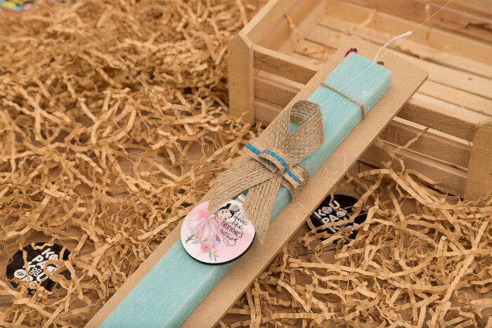 Dance Like everyone's watching, Easter Set, wooden keychain & aromatic flat Easter candle (30cm) (TURQUOISE)