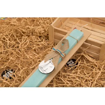 Sailing, Easter Set, wooden keychain & aromatic flat Easter candle (30cm) (TURQUOISE)