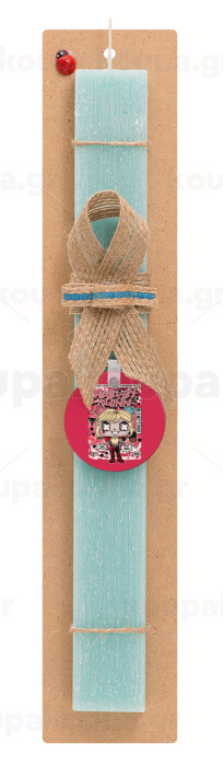 Harley Quinn (Χάρλεϊ Κουίν), Easter Set, wooden keychain & aromatic flat Easter candle (30cm) (TURQUOISE)