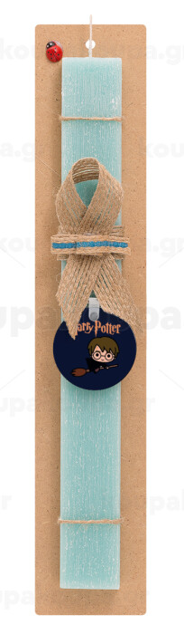 Harry potter kid, Easter Set, wooden keychain & aromatic flat Easter candle (30cm) (TURQUOISE)