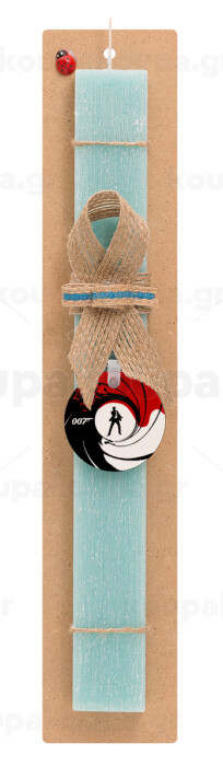 James Bond 007, Easter Set, wooden keychain & aromatic flat Easter candle (30cm) (TURQUOISE)