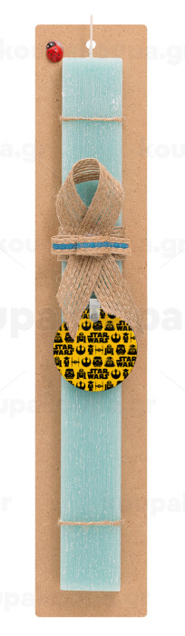 Star Wars Pattern, Easter Set, wooden keychain & aromatic flat Easter candle (30cm) (TURQUOISE)