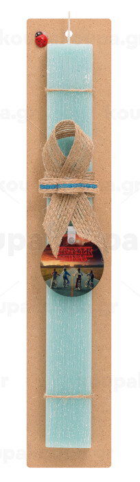 Stranger Things city, Easter Set, wooden keychain & aromatic flat Easter candle (30cm) (TURQUOISE)
