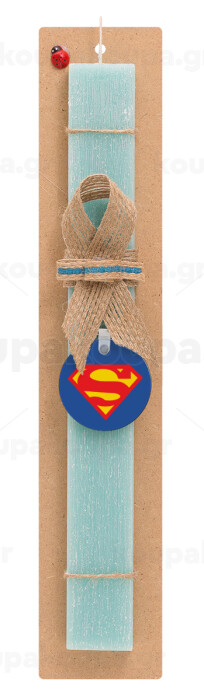 Superman, Easter Set, wooden keychain & aromatic flat Easter candle (30cm) (TURQUOISE)