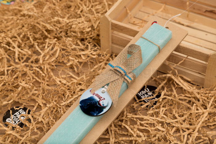 Why so serious?, Easter Set, wooden keychain & aromatic flat Easter candle (30cm) (TURQUOISE)