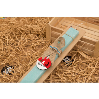 Lucky Luke shadows, Easter Set, wooden keychain & aromatic flat Easter candle (30cm) (TURQUOISE)