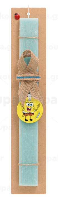 SpongeBob SquarePants character, Easter Set, wooden keychain & aromatic flat Easter candle (30cm) (TURQUOISE)