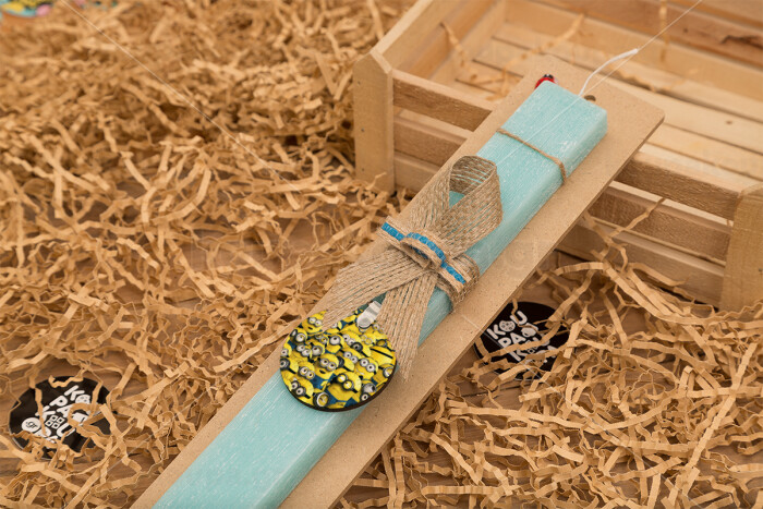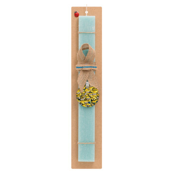 All the minions, Easter Set, wooden keychain & aromatic flat Easter candle (30cm) (TURQUOISE)