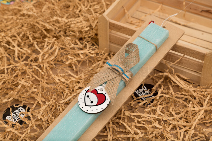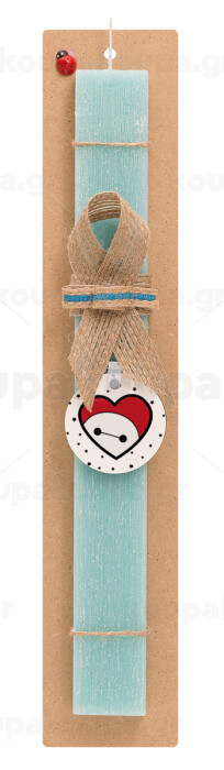 Baymax heart, Easter Set, wooden keychain & aromatic flat Easter candle (30cm) (TURQUOISE)