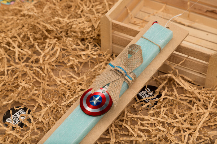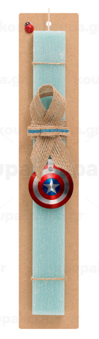 Captain America, Easter Set, wooden keychain & aromatic flat Easter candle (30cm) (TURQUOISE)