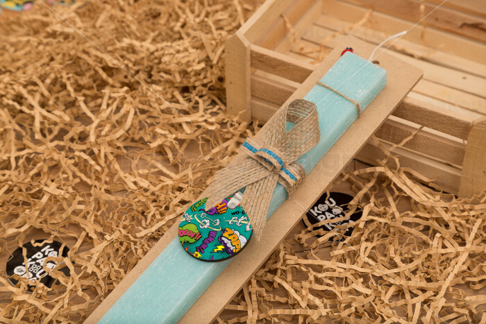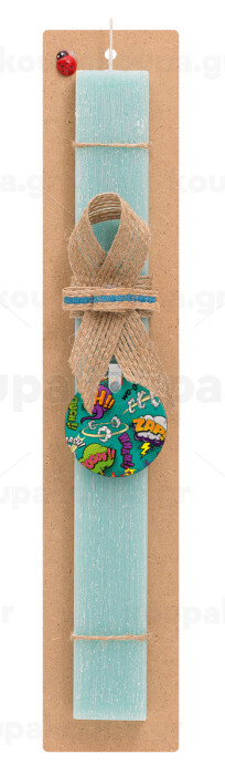 Comic oh, Easter Set, wooden keychain & aromatic flat Easter candle (30cm) (TURQUOISE)