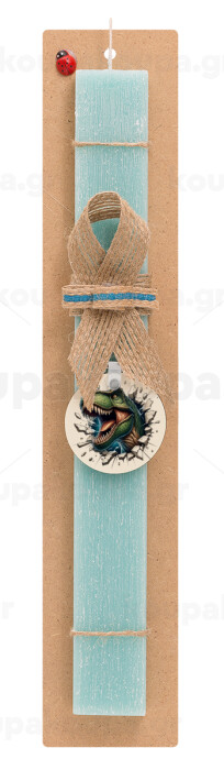 Dinosaur break wall, Easter Set, wooden keychain & aromatic flat Easter candle (30cm) (TURQUOISE)