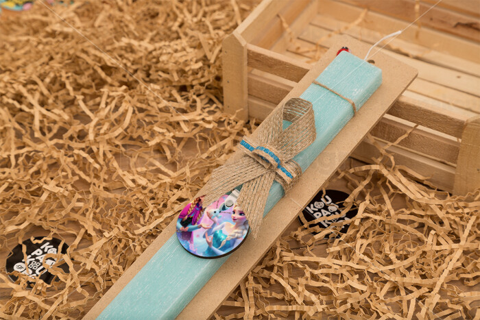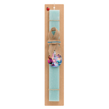 Elsa & Anna Princess, Easter Set, wooden keychain & aromatic flat Easter candle (30cm) (TURQUOISE)