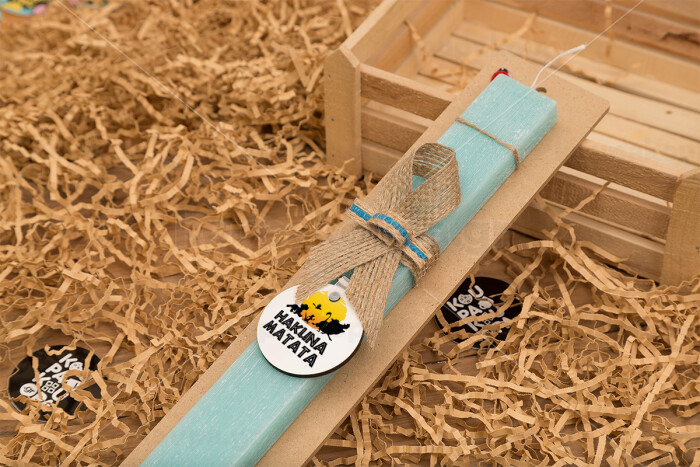 Hakuna Matata, Easter Set, wooden keychain & aromatic flat Easter candle (30cm) (TURQUOISE)
