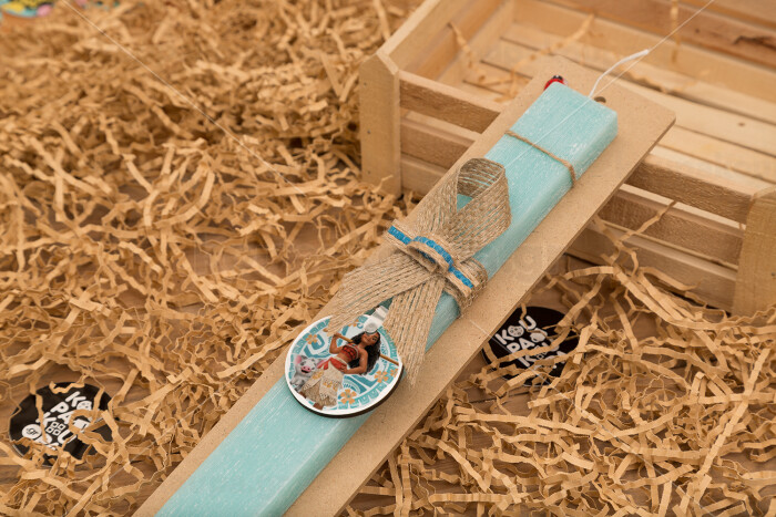 Moana, Easter Set, wooden keychain & aromatic flat Easter candle (30cm) (TURQUOISE)