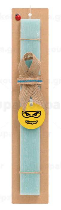 Ninja Eyes με όνομα, Easter Set, wooden keychain & aromatic flat Easter candle (30cm) (TURQUOISE)