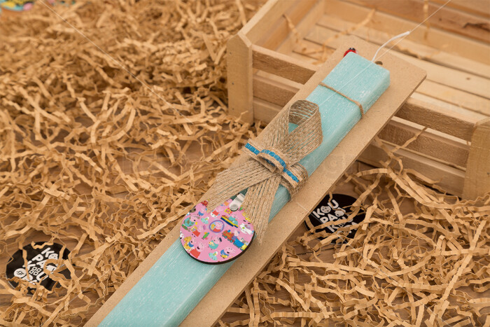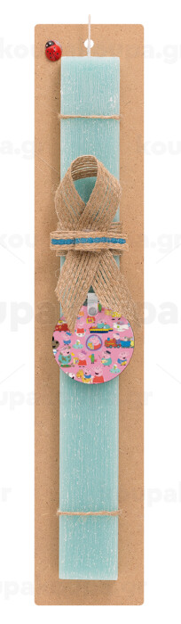 Peppa pig Characters, Easter Set, wooden keychain & aromatic flat Easter candle (30cm) (TURQUOISE)