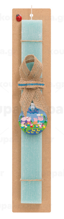 Peppa pig Family, Easter Set, wooden keychain & aromatic flat Easter candle (30cm) (TURQUOISE)