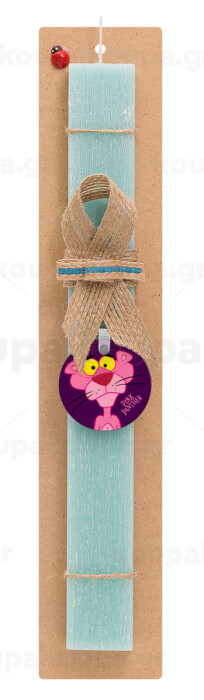 Pink Panther cartoon, Easter Set, wooden keychain & aromatic flat Easter candle (30cm) (TURQUOISE)
