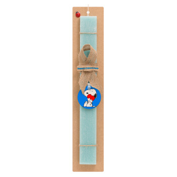 Snoopy, Easter Set, wooden keychain & aromatic flat Easter candle (30cm) (TURQUOISE)