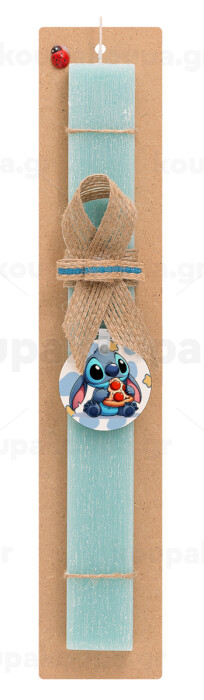 Stitch Pizza, Easter Set, wooden keychain & aromatic flat Easter candle (30cm) (TURQUOISE)