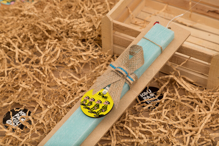 The Daltons, Easter Set, wooden keychain & aromatic flat Easter candle (30cm) (TURQUOISE)