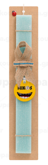 The minions, Easter Set, wooden keychain & aromatic flat Easter candle (30cm) (TURQUOISE)