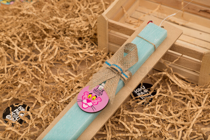 The pink panther, Easter Set, wooden keychain & aromatic flat Easter candle (30cm) (TURQUOISE)
